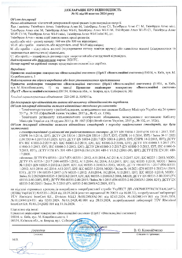 "ТвінФреш Атмо" декларація відповідності 08.10.2024