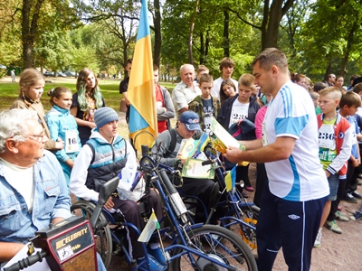 Мер міста Тарас Добрівський - активний учасник пробігу, почав свій пробіг з дистанції 500 м, яку він подолав зі своїм сином.