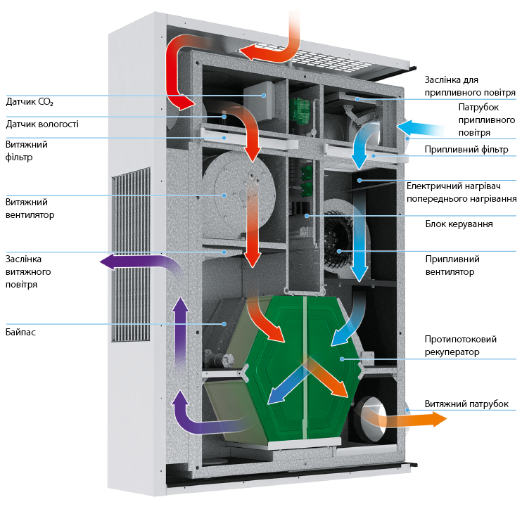 | Модельний ряд Вентс Уні Макс | Номінальна потужність, Вт | Максимальна витрата повітря, м3/год | Система управління | Догрів | BMS протокол |