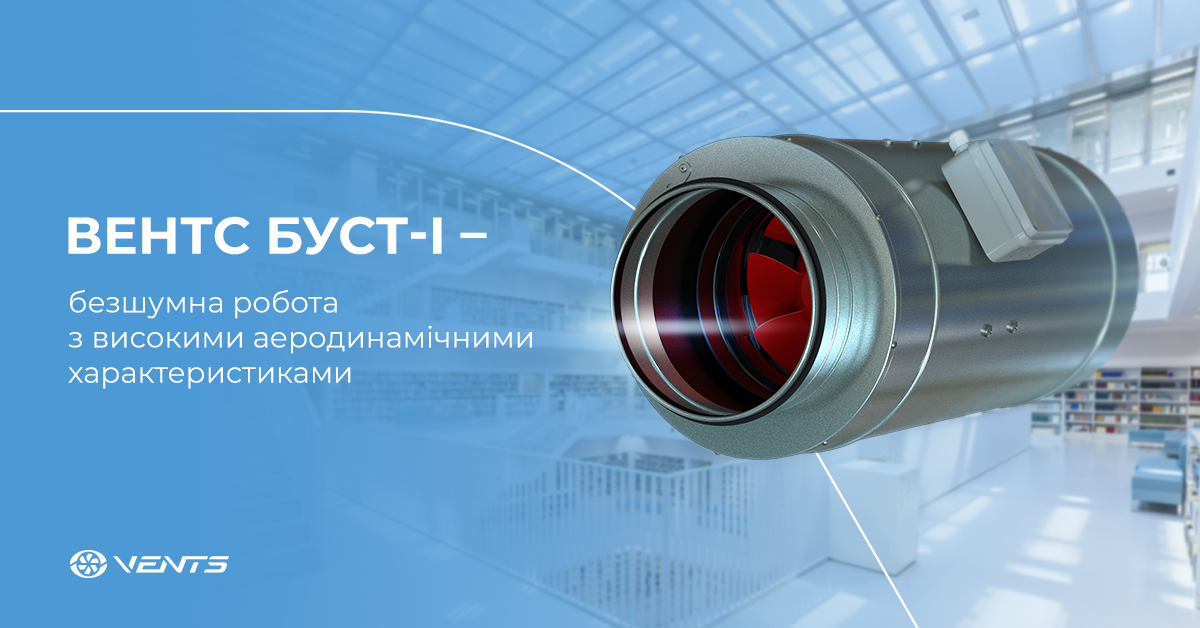 Boost-I – канальні шумоізольовані вентилятори змішаного типу рекомендовані для припливно-витяжної вентиляції різних комерційних або промислових приміщень зі зниженим рівнем шуму: бібліотек, конференц-залів, навчальних закладів, дитячих садків тощо. Вони виготовляються для круглих повітропроводів діаметром від 200 до 250 мм та органічно поєднують у собі найкращі аеродинамічні характеристики й властивості осьових та відцентрових вентиляторів. Звукоізольована конструкція забезпечує безшумну роботу пристрою попри потужний повітряний потік та високу продуктивність – до 1670 м³/год.